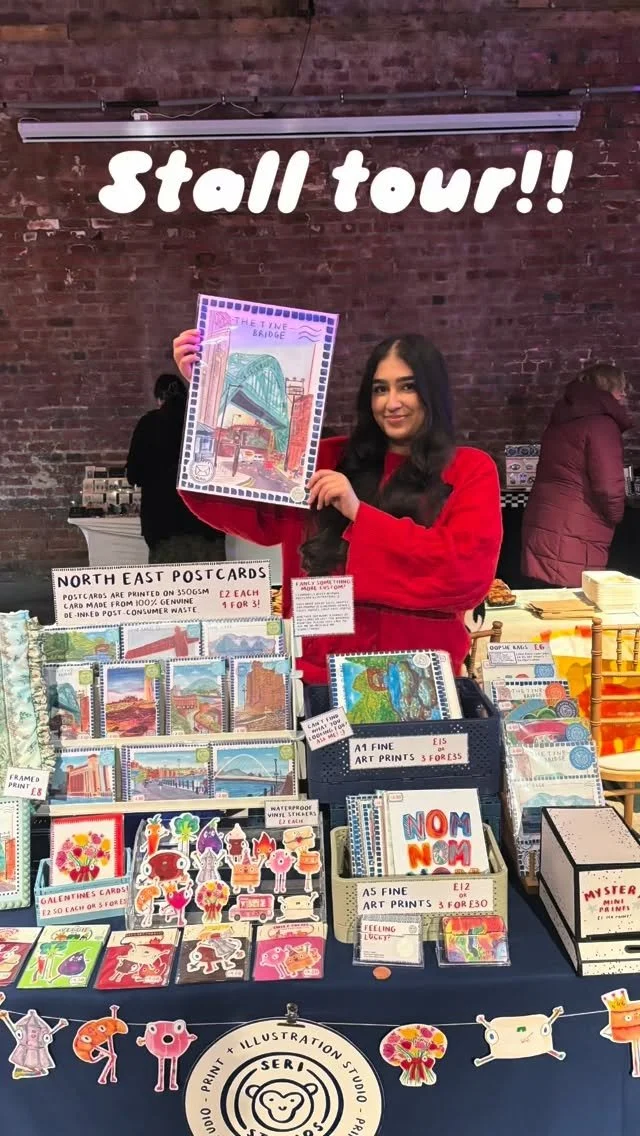 Hello! I’m Seher (AKA Seri) and I am a mixed media illustrator based in the North East of England! All my pieces are painted in my gorgeous little home studio.